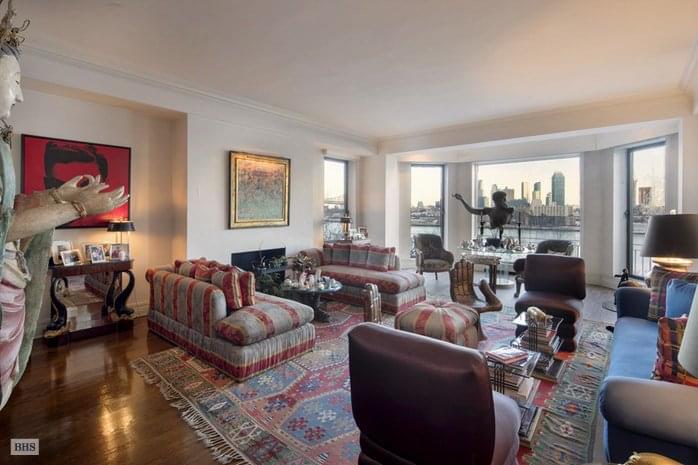 Magnificent duplex with 200 feet of stunning East River views in one of Manhattan's top, white-glove co-ops located in exclusive Beekman Place. This twelve-room home has 4 bedrooms and 4.5 baths. One enters the apartment through a grand entry foyer with a large powder room nested under a sweeping staircase leading up to the private quarters. Radiating off the entry hall is the thirty-foot corner living room and adjacent library. Both rooms have direct river views, Juliet balconies and fireplaces. The expansive formal dining room leads into a large eat-in kitchen with butler's pantry. Down the hall is a service stairway, staff quarters and wine cellar. Four luxurious bedrooms are on the upper level including an large corner master suite with wood burning fireplace, dressing room and elegant bath. Adjacent to the master are three additional bedrooms with ensuite baths and copious walk-in closets, a home office and laundry room. Unique building amenities include : state-of-the-art fitness center, Olympic sized swimming pool, beautiful riverfront garden, in-house garage. Club party rooms for entertaining with a service kitchen, golf simulator and basketball court. 24-hour doorman and attended elevator. Pets allowed.