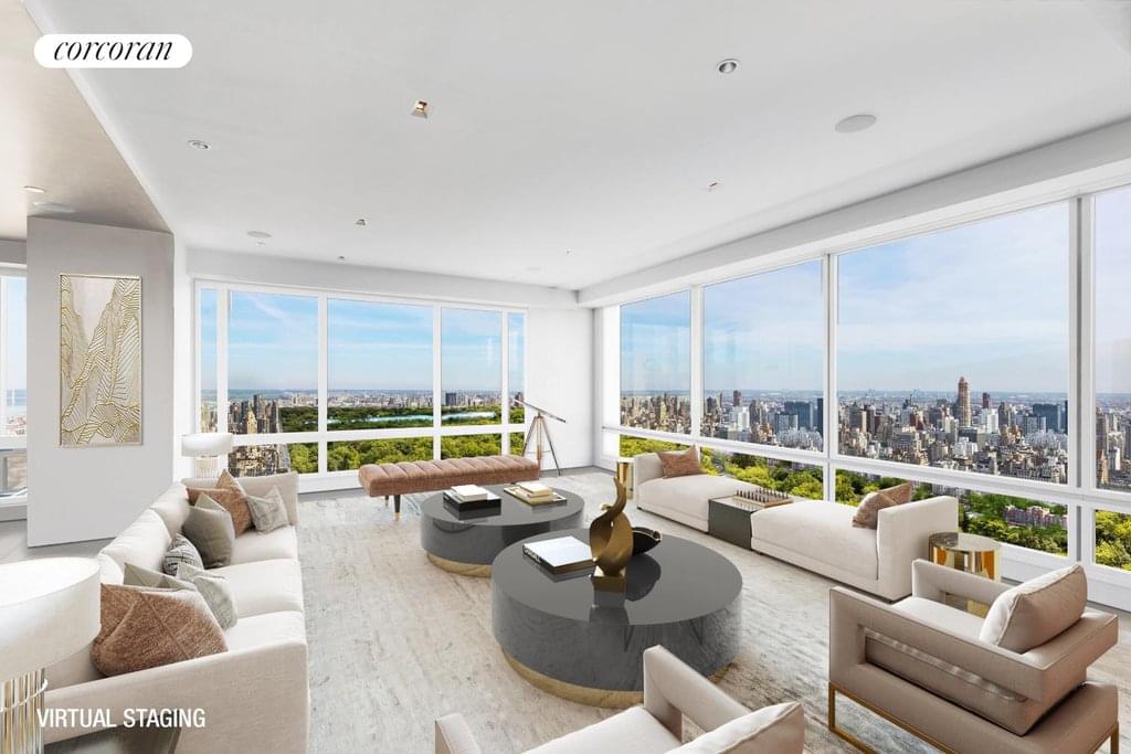 Penthouse 50A is a luxurious corner 4,500 square foot home that sits high atop the city with breathtaking panoramic views from three open exposures showcasing the entire span of Central Park, the Hudson River, and the NYC skyline and beyond! Located at the southwest corner of the Park, the home's unparalleled views feature 130 feet of Central Park Panorama; a jaw-dropping seasonal perspective like no other. The impact of this spectacular vantage point is instantly realized through floor-to-ceiling windows from every room, drawing in beautiful natural light throughout the apartment and stunning sunrises from the east and sunsets from the west are guaranteed. These magnificent vistas, combined with the luxury of full-service living and superior quality design and finishes, make this an incomparable residence. The penthouse perspective offers the homeowner a bird's eye view of some of the most iconic NYC events including; the annual Macy's Thanksgiving Day parade, the fireworks display on New Year's Eve from Central Park, as well as the final sprint to the finish for the runners in the NYC Marathon. The apartment can also function as an ideal Manhattan pied-a-terre securely located within a white-glove building with 5-Star hotel services proximate to every convenience. Resident Amenities include: 24 Hour Doorman and Concierge, Live-in Resident Manager, Roof Deck with 360 Degree Views, 5 Star Hotel Services including Maid and Valet Service, Health Club with Pool and Spa Services with Steam Room and Sauna, 24 Hour Room Service from Jean George, On-site Business Center. The elegant layout includes an expansive open loft-like entertaining expanse with living and formal dining that offers two exposures and showcases aerial views of the city. The split bedroom or wrap floorplan presents five bedrooms (each with en-suite bathrooms), a very spacious library, six-and-a-half bathrooms, an eat-in kitchen and breakfast room, a gracious entry foyer and plentiful custom closets. The luxurious master suite overlooks the Park and city facing East and features two master bathrooms, a dressing room and multiple walk-in closets.