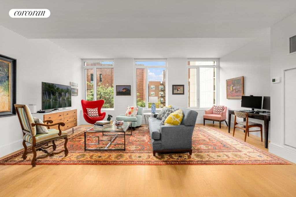 Here is a rare opportunity to own one of the largest two-bedroom, two-bath residences at 1 Clinton Street, Brooklyn Heights' best-selling condo building. Residence 5E at One Clinton is a gracious 1,637sf home with western views of tree-lined Clinton Street. An elegant foyer leads to an open kitchen with a large marble-topped island and tons of storage, along with a wine refrigerator and 6 burner range. Across from the kitchen there is a a spacious separate dining area, and the 20-foot wide living room accommodates two seating areas. The primary bedroom boasts an en-suite, four-fixture marble clad bath with radiant heated flooring and an expansive 12' walk-in closet that has been elegantly transformed with custom designed California Closets, including a built- in dresser. The secondary bedroom also has a California Closet, and the second full bath is just across the hall, along with a linen closet and a washer/dryer. The apartment's west-facing windows take in incredible afternoon light and all have custom light-filtering roller shades. A coveted parking space in One Clinton's garage is available for separate purchase.