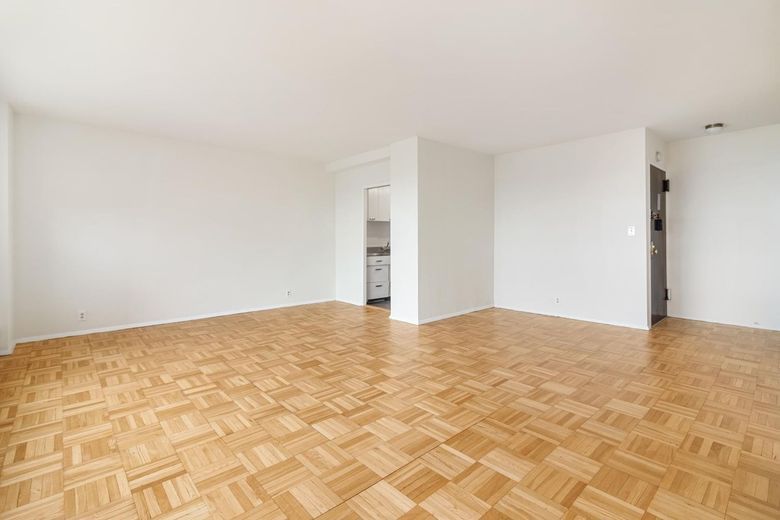 This high floor, 1-bedroom co-op apartment is move-in ready with refinished hardwood floors and freshly painted! The large L-shaped living room and dining area is bathed in sunlight from a wall of windows which look out onto an expansive skyline view!. The ample bedroom also has two exposures. A galley kitchen with stainless steel appliances complete your quiet oasis near restaurants, shopping, schools, parks and several modes of transportation. All utilities included. Fordham Hill Oval is a bucolic, 12-acre landscaped, gated community with 24-hour security with video surveillance, a playground, garage, laundry room, community room, patio seating areas, a senior citizens center and storage rooms. No dogs allowed. Buses: #12, 12-SBS, 10, Express Bus; Trains: #4, MetroNorth