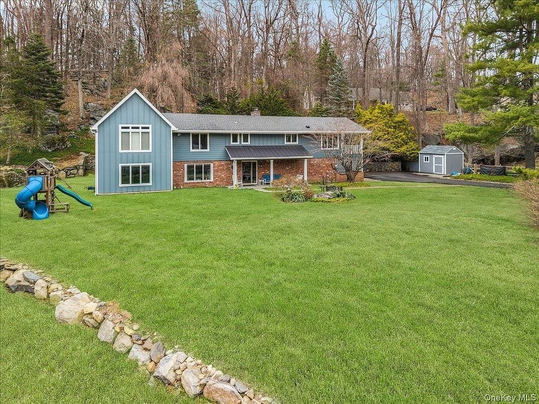 Welcome to 1 Fox Ridge Road in the beautiful Windmill Farms section of Armonk! This four bedroom, four full bathroom home has all the features, space, areas and more the modern buyer is looking for with an expansive and level front yard. Three full bathrooms upstairs, one full bathroom downstairs. Luxurious white oak hardwood floors throughout. Original stone wood burning fireplace in living room with brand new insert. Sparkling gourmet kitchen with quartzite backsplash/countertops and KraftMaid cabinets. Beverage fridge and storage in island. Two convection ovens (one with air fryer feature). Recently restained covered deck off the dining area - enjoy a barbeque or a morning coffee in your personal treehouse-like retreat. New master suite - ensuite with walk-in closet, spa-like bathroom has a free standing tub with serene views plus a rain shower and double sinks. Three additional bedrooms upstairs, perfect for guests, work-from-home and everyday living. Stone patio and Jacuzzi accessible from upstairs bedroom with sliders. Light, bright, recently expanded walk-out lower level to private side yard. Tons of storage: double attics plus expansive laundry/storage room, garage and exterior shed storage. Alarm system. Updates include: brand new HVAC system, new playroom, all new bathrooms, new water heater, newer roof, many new windows throughout. Close to Byram Hills High School, The Summit Club at Armonk, Route 22 and I-684, Armonk's many local day-camps and stunning nature trails for the outdoors lover. Enjoy luxury shopping, dining, refreshment, fashion and more in downtown Armonk. A must see home!
