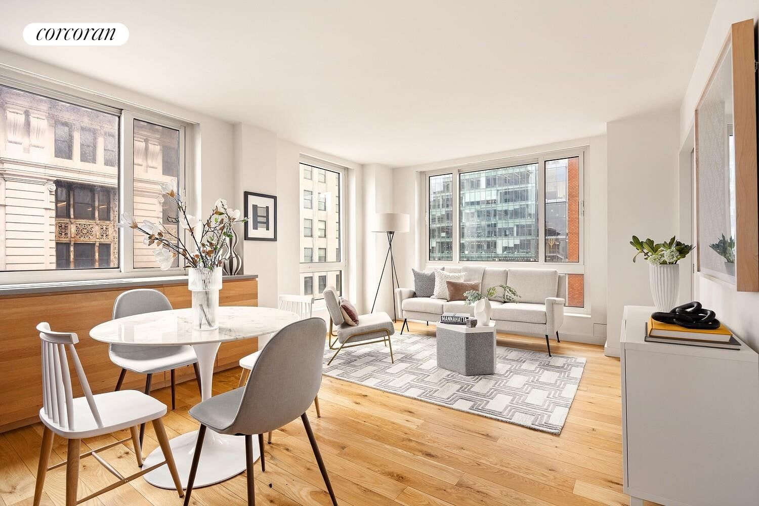 A rare opportunity to own a high-floor, corner-unit in one of downtown Manhattan's most coveted full-service buildings-Zeckendorf Towers-right on Union Square. Residence G20A is a sun-drenched, one-bedroom condo that seamlessly blends natural materials with refined modernism, earning a full feature in Dwell Magazine for its unique and thoughtful renovation by award-winning architecture firm, StudioKCA..