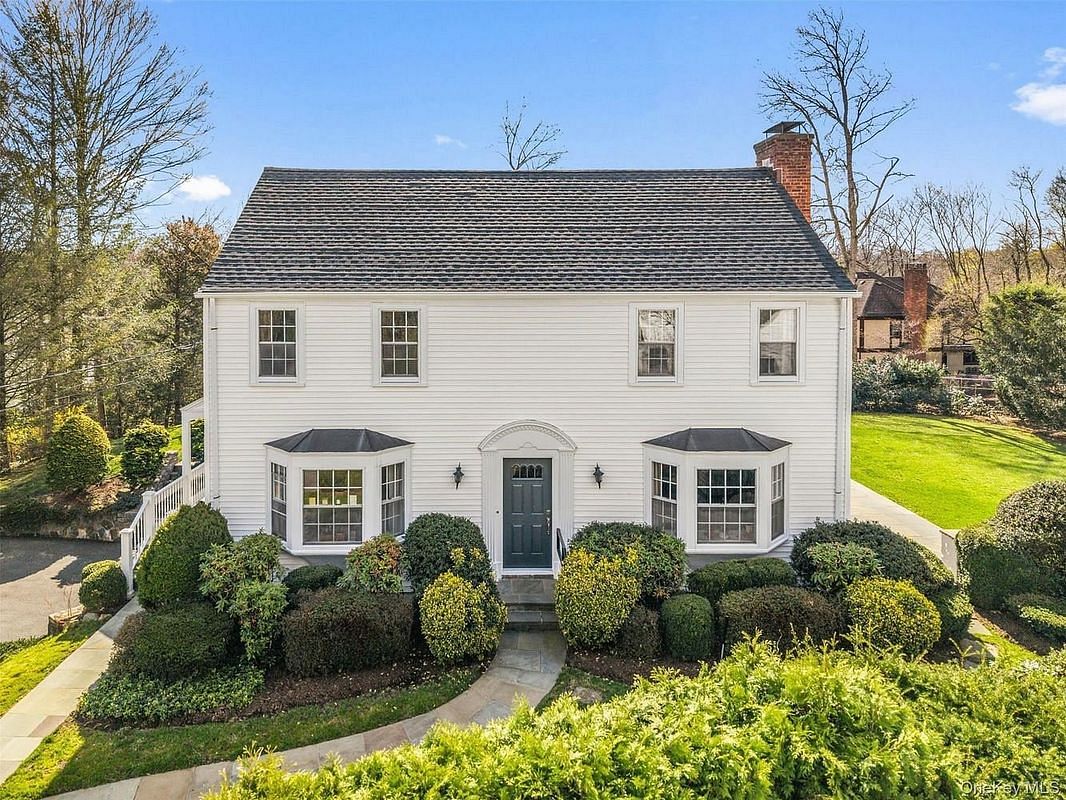 Classical center hall Colonial in one of the most coveted neighborhoods in Scarsdale. Set in ultra-prime Fox Meadow, a quick stroll to the Village, elementary school, high school, Metro North station, restaurants, shopping, and more, this charming home is bathed in sunlight and features thoughtful details, including handsome moldings and gleaming hardwood floors throughout. Perfectly perched atop a graceful hill surrounded by mature landscaping, enter to discover a spacious formal living room wrapped in windows, a wood burning fireplace, and French doors leading out to a slate patio, perfect for dining, entertaining, or quiet relaxation. Host dinner parties in the bright formal dining room, conveniently located adjacent to the spacious kitchen featuring stainless steel appliances, ample cabinetry, and granite countertops. The main floor also boasts a powder room and a delightful wood-paneled family room with a second wood-burning fireplace, creating the perfect space to work from home, or cozy up with a good book or good friends. The family room also features French doors leading to the patio and large, flat, landscaped, and private backyard. Upstairs, the sizable primary suite has both a private bath and a dressing area, and two spacious bedrooms share a hall bath, while the flexible lower level includes a large laundry room, storage, access to the 2-car attached garage, and a finished recreation room with decorative fireplace, which could easily be reimagined as a den, home theater, gym or playroom. Whether looking to redesign, reimagine, or move right in, this wonderful home offers endless opportunities!