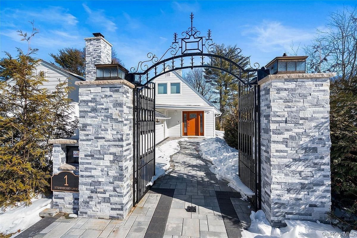 A private gated entrance and extended driveway set the tone, while professionally landscaped grounds with mature privacy trees and custom pavers wrap the home. Architectural exterior lighting, EV charging, a backup generator, and a centralized camera security system monitoring the entry and perimeter provide modern convenience and peace of mind.