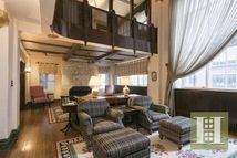 Ceilings soar to nearly 19-feet in the Living Room; the 14-foot casement windows flood the space with south and east light. The Dining and Living Rooms are separated by pocket doors, providing an easy flow from the spectacularly renovated Kitchen to the Dining Room with balcony overlooking the dome of the neighboring church. The Kitchen is outfitted with top appliances and copper-clad venting hood.