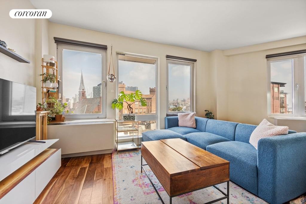 Welcome home to residence 6A at 10-50 Jackson Avenue, a corner one-bedroom condominium unit consisting of 813 interior square feet and a 60 square foot balcony. There is an in-unit Bosch washer dryer, a walk-in closet, ceiling heights up to 9' x 3', and beautiful views in all directions. The owner has installed new heated engineered hardwood flooring in a natural 5-inch-wide Acacia finish.