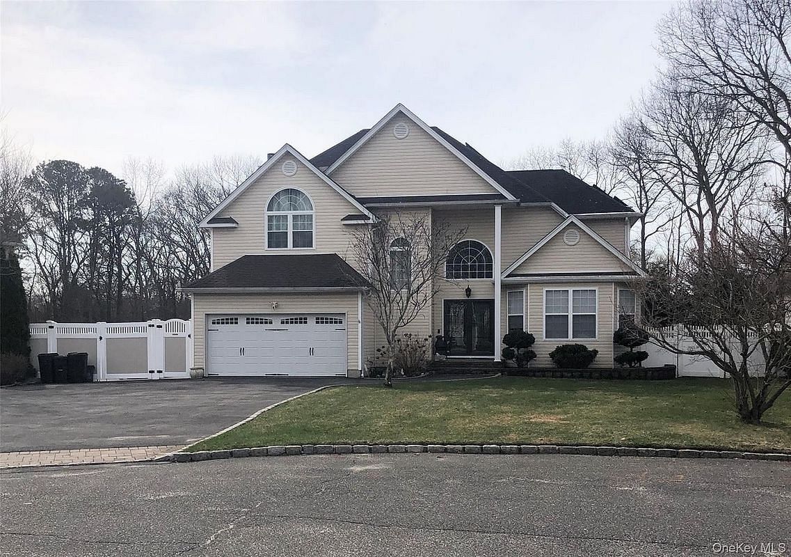 Looking for the house that has it all-look no more.4/5 bedroom,4 bath colonial with a beautifully mature landscaped backyard privately set at the end of the cul-de-sac.Enter through a custom double door into a foyer featuring HW floors, cathedral ceiling and large circle top window. The formal living room shares the high ceiling,HW floors as natural light flows through the four tall windows with 2025 custom high end shades.Off the LR is a formal dining room with natural light, HW floors and a crystal chandelier.SS appliances(Newer gas stove w/double oven,Microwave&fan,DW,2025 Frigidaire Gallery fridge) elevate the eat-in-kitchen that has solid wood oversized cabinets,granite countertops, ceramic floor and a large center island.Highats, sink window and newer Anderson sliders with custom shades allow natural light into the room. The kitchen dining area opens to the cozy family room with a gas FP and two side windows and a Pella bay window(2021).Sit comfortably in the bay window and look out into the lovingly maintained backyard oasis.Through the hall find ISE basement door, a double closet, a separate laundry room and entrance to the garage.The 2024 front load LG washer and dryer sit next to a slop sinks ,side entrance, storage cabinets and another double closet.Up the wood staircase, pass another large round topped window and step into the second floor loft landing that looks down into the foyer.The first king sized bedroom faces the front and another newer round top window offers natural light.The second bedroom is well suited as smaller bedroom or office, the third queen sized room looks out to the back of the house and both have great natural light.In the hall there is a linen closet and a full size bath with double sinks, vanity cabinet,glass doors on the tub/shower combo and vaulted ceiling and also has a window!The primary king sized plus bedroom suite boasts a trey ceiling, two walk in closets, and three large windows.In the master bath find a separate soaker tub and shower,four large windows, vaulted ceiling,highhats and a double sink vanity.Additional storage can be used in the full stand up attic.The full basement has an OSE, three egress windows, electric heat and is ready to provide an additional family room and separate living space for others if you get proper permits.The two car plus garage with newer garage door and garage door opener is perfect for cars and storage alike.Relax or entertain in the lovely manicured gardens in the half acre backyard paradise with fig, pear and apple trees, grape vines and blueberry bushes as well as colorful flowering flora throughout.Soak or swim in the oversized custom heated salt water IGP with 10 foot bench steps and jets, diving board and changing mood lights that is surrounded by pavers that extend to two walkways.The gazebo and pagoda provide additional shade and the shed with electric,outlets,and motion det. light adds additional storage.The property is completely fenced and the PVC fencing in the front has a 12 foot gate to allow access to the extended 7 car driveway on the side of the house perfect for additional vehicles and a 10 foot gate on the other side for easy access into the back.Other items to note:2015 seller owned solar panels,2021 HW tank,lowline cesspools,natural gas, additional outlets by the pool pump/outside garage door/front porch/either side of the back of the house, tv wires behind the walls, 2 zones forced air,7 zone IGS and so much more! House sold as is.