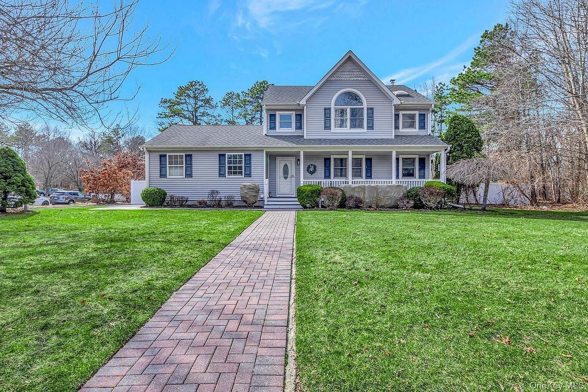 Welcome to this beautifully maintained 3-bedroom, 2.5-bath Colonial set on a meticulously landscaped 0.87-acre corner lot in Manorville. Positioned for exceptional privacy, this property features no direct neighbor across the street and is surrounded by a dense natural wooded buffer along the side and rear.