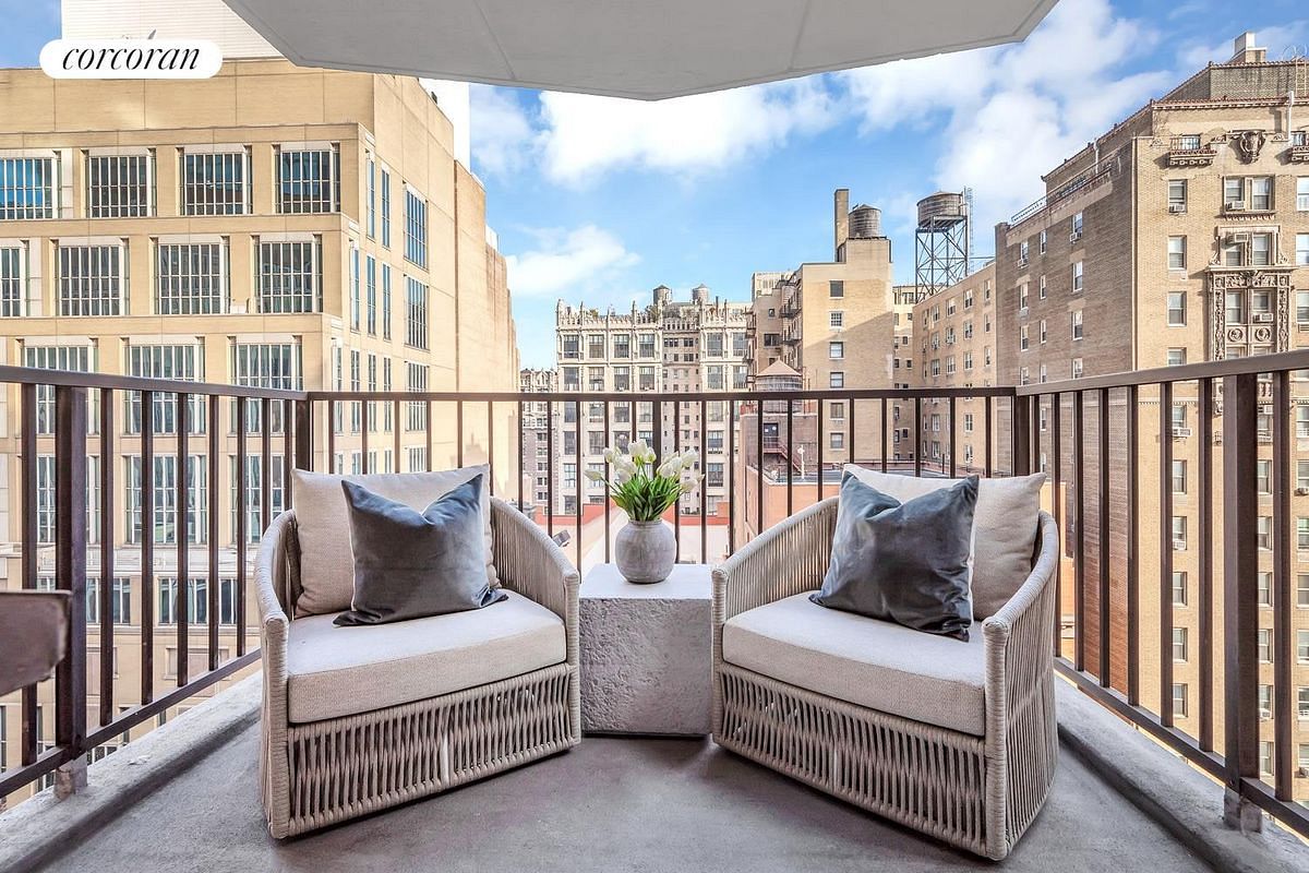 The living room stretches over 27 feet in length, providing ample room for a variety of furniture arrangements. The natural light is plentiful and the north facing views overlook West 67th Street, the Hotel Des Artistes, and the Central Park West Historic District. Step onto your own private balcony to take in the lovely views of the building garden and running fountain-perfect for unwinding or entertaining guests.