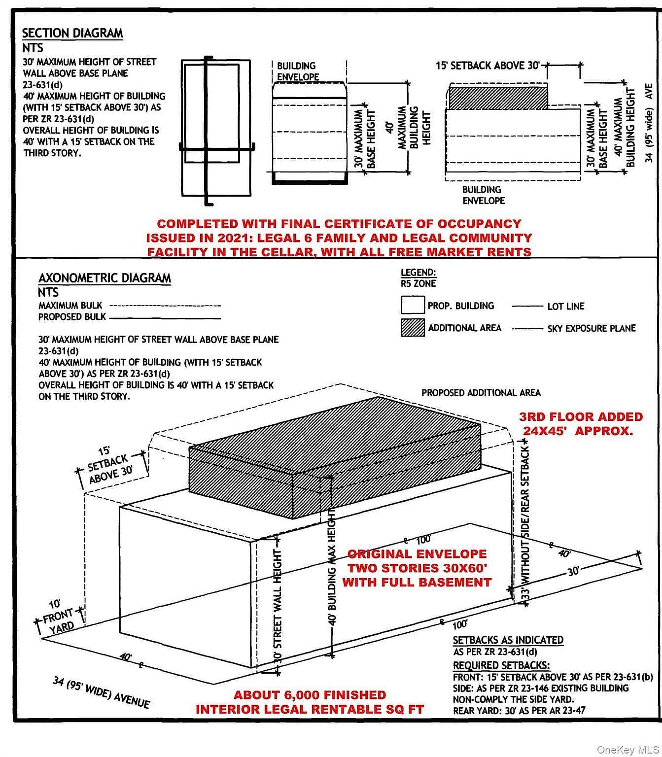 The original 1926 building was gutted out, rebuilt and expanded in 2021 when the new certificate of occupancy was obtained. Currently it features 6 residential units and a legal Community Facility in the Basement, currently rented to a non profit organization). The first floor features two large 1 Bedroom apartments (1L and 1R), featuring their own gas fired circulating hot water heating systems, in unit washer driers, new kitchens and bathrooms, each with access to their private backyard. These two units are large and could be easily converted to Junior 4 Two Bedrooms. Unit 1L is vacant. On the second floor there are two units currently used as two Jr4 two bedrooms, 2L and 2R (with living room and kitchen combos), similar heating and features than the first floor units and with rear facing balconies. Unit 2R is currently vacant. The third floor unit features two smaller one bedroom units with large south facing terraces and similar heating and features than the other 4 units. Unit 3R is currently vacant. There is a private driveway and an attached 1 car garage. As a building substantially rebuilt, it is not rent regulated (no rent control and no rent stabilization). The expenses, available on request, are low and for example, just the real estate taxes are covered by the Community Facility current rent.