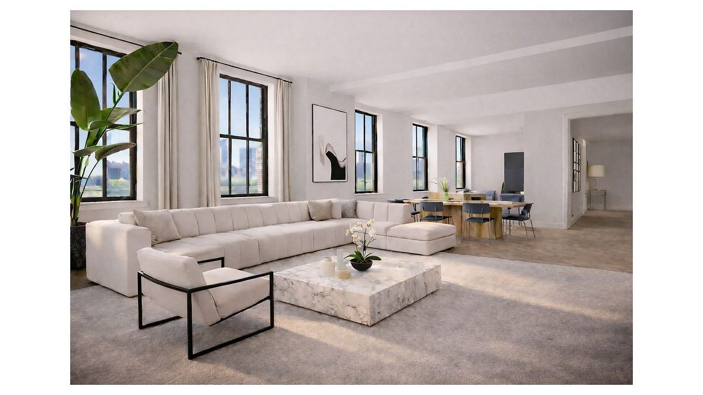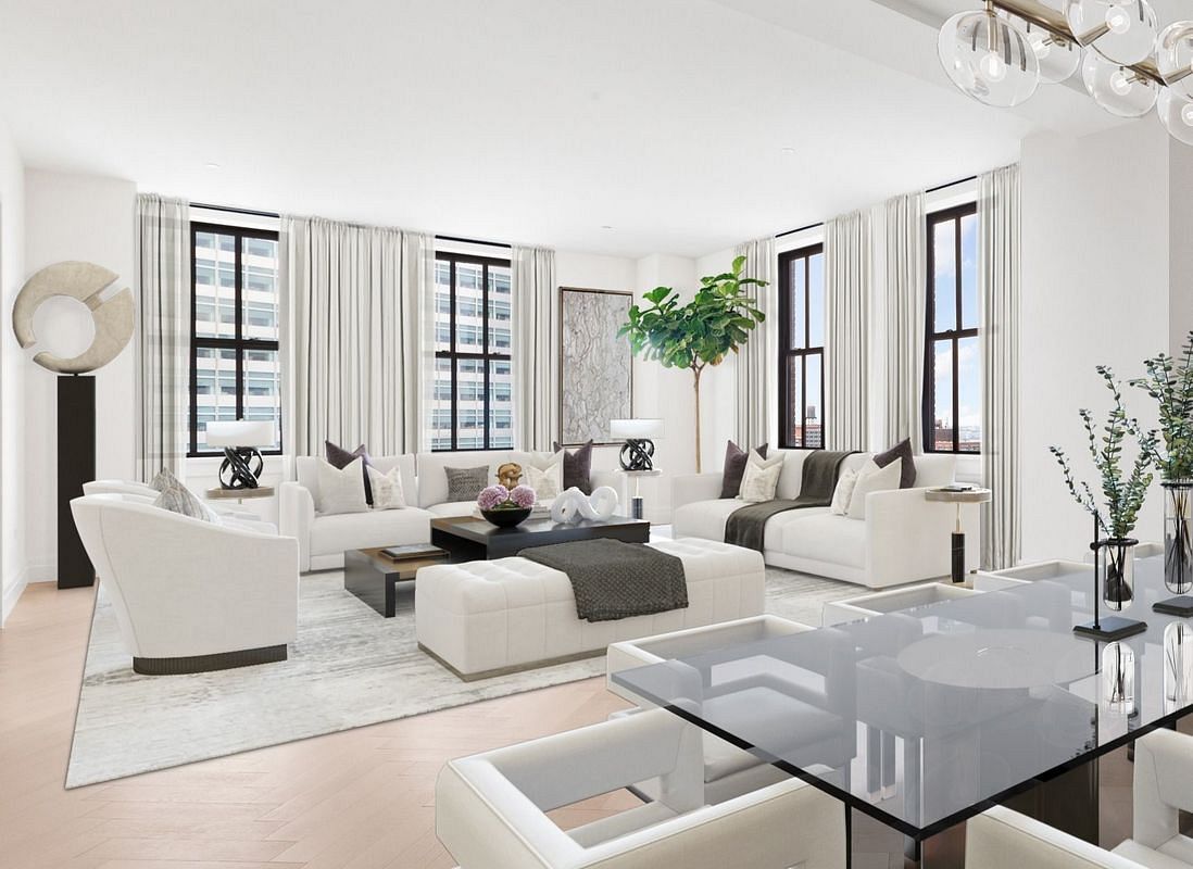 Triple Mint & Just Newly Renovated with Panoramic Water Views from Every Room, Residence 22B presents a rare opportunity to own one of the most sought-after 4-bedroom, 4-bath lofts at the iconic One Hundred Barclay. Perched high on the 22nd floor and bathed in natural light, this 2,870-square-foot masterpiece blends timeless elegance with modern sophistication. Grand 10-foot ceilings, oversized 7-foot casement windows, and 4-inch wide-plank white oak floors set the tone for airy, expansive living, while panoramic northwest views from every room capture the majesty of the Manhattan skyline and the shimmering Hudson River beyond.
