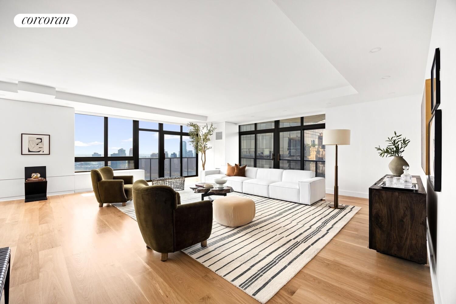 The massive great room has two corner exposures, 65'-long living and dining room, oversized windows and access to two balconies. With room to create multiple and separate living areas with more to spare, this extraordinary space is anchored by the center kitchen.