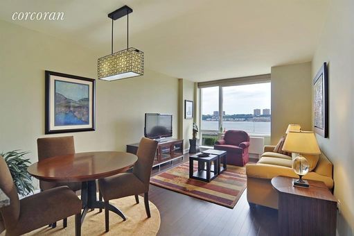 Welcome to this beautiful renovated two-bedroom, two-bathroom residence with breathtaking Hudson River views from every room. This home offers a spacious and flexible layout that can be configured as a two-bedroom with a sliding wall or a one-bedroom with a magnificent entertainment space. The open kitchen provides direct river views and features granite countertops, a breakfast bar, and top-of-the-line Miele and Subzero appliances. Both marble bathrooms are equipped with Waterworks fixtures and deep soaking tubs, and the master bath also includes a stall shower.