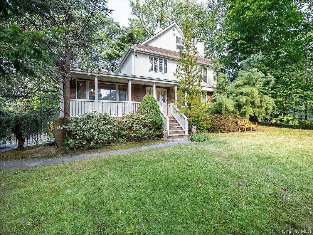 Spacious Colonial boasting 4 bedrooms, 3 full baths, and 2 half baths. The home features a formal living room with a fireplace, a sky-lit formal dining room, a large den with a fireplace, and a granite eat-in kitchen with stainless steel appliances that opens to the deck. A vaulted second-floor landing with skylights flows to a primary bedroom with a fireplace, an en suite bath, two additional bedrooms, and a hallway bath. The lower level has a private entrance to a finished playroom, providing additional living space. The property offers a welcoming front porch, circular driveway, one-car attached garage with additional carport, Anderson windows, gas heat, skylights, in-ground sprinklers, and central air. EM Baker Elementary, Great North Middle and High School.