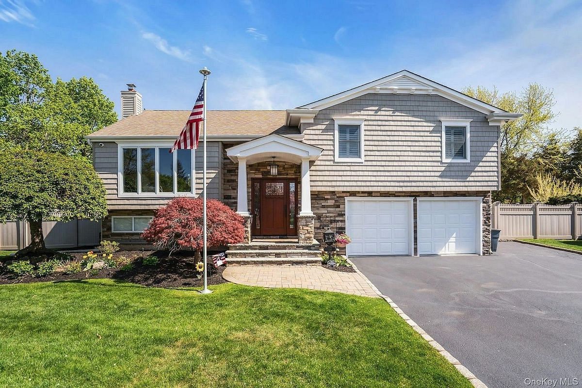 This is the one you have been looking for! Gorgeous home renovated with a meticulous touch. Curb appeal begins with the professionally landscaped property featuring specimen trees and plantings that bloom all spring, summer and fall. The home is sided with vinyl and stone that is beautiful and the front door is customized with stain glass for that wow factor entrance. Enter the home to beautiful custom wood flooring and a dressed up living room. The gas fireplace is the focal point of the room with granite, built-in shelves around it and detail to moldings. Plenty of natural light from the floor to ceiling wall of casement windows. The gourmet kitchen was renovated in 2004 with vaulted ceilings and is laid out with the chef in mind. This is a gas house so you have a Thermador 4 burner gas stove. The custom cabinets feature glass cabinets with lighting and a beautiful wine display for entertaining. The appliance wall features paneled refrigerator, wall oven, warming draw and microwave. Nice area for dining table. The primary bedroom has been expanded and renovated to perfection! The hardwood floors are beautiful and the room is big. There are 2 walk-in-closets and a private ensuite bathroom. There are plantation shutters in all of the bedrooms. The other 2 bedrooms are nice and the main bath has been updated also. The lower level features an office, a den and laundry room (Dryer is a week old). There is a full bath on this level also. There is access to the 2 car garage as well. The back door leads to large covered patio with fan light, high hats, a seating area and a table. All overlooking the gorgeous yard! From the kitchen sliders you enter another covered patio that is stunning. This is what they call, living the dream! The covered patio overlooks the pool and firepit. It is a big, flat, sunny backyard. The pool was built in 2001 and the liner is 2015. It is salt-water and the filter is one week old. It is plumbed for a gas heater. Attic with pull-down-stairs, unfinished with some flooring. Brand new Air Conditioner in 2025 with 1 zone. There is a split system in the lower level. Boiler 2019 with 1 zone. Hot Water Heater 2020. Siding, gutters,Windows, walkway, stoop all 2018. New front door lock. 200 Amp. Underground wires. Cesspool 10 years old with 2 dry wells. Roof 2013. Natural Gas house.