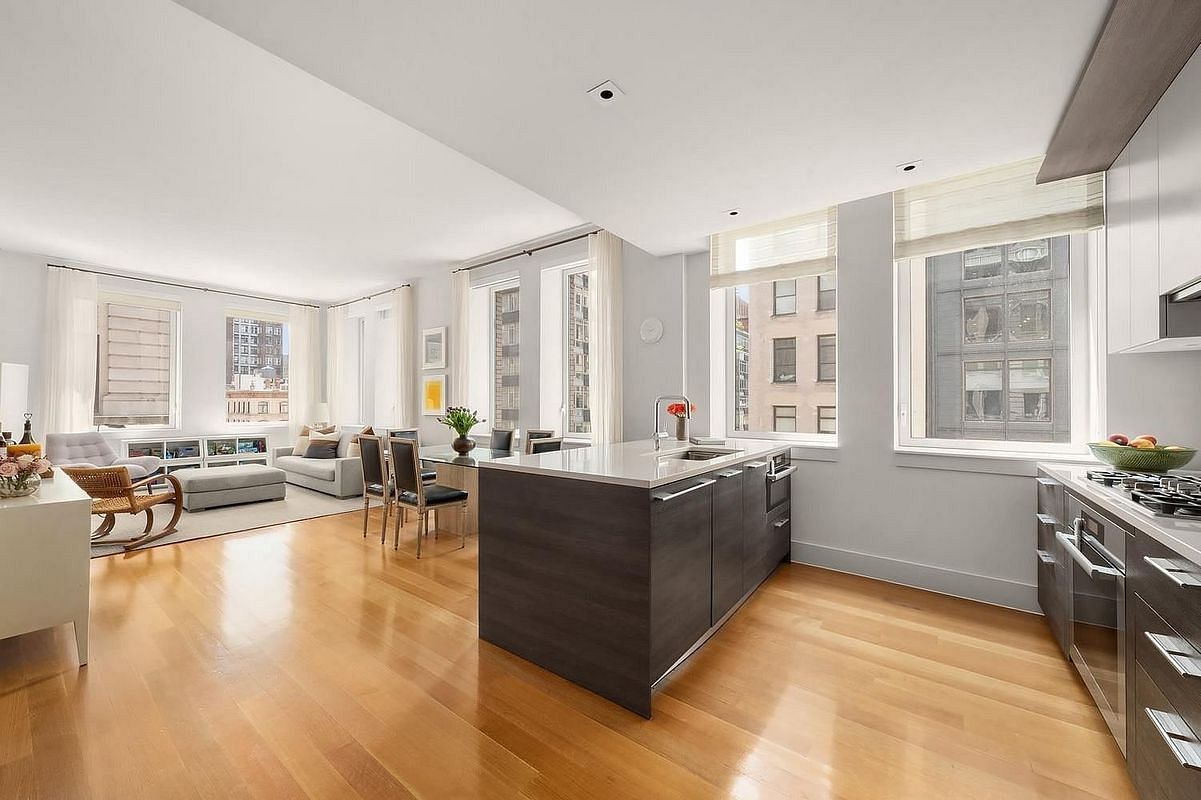 Totaling 1,815 square feet, Residence 6B enjoys handsome oak flooring, high ceilings, and excellent light from its 13 oversize windows facing south and west. Built in 1904 and converted to condominiums by Bizzi & Partners in 2014, this home in The Leonard enjoys the scale of a pre-War loft and the grace and function of a layout designed for contemporary living.