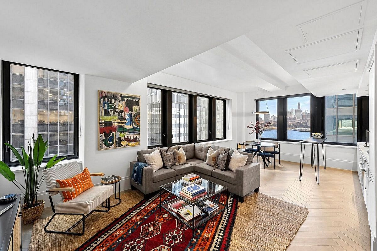 Welcome to 101 Wall By the Water, the newest luxury condominium development where the Seaport meets Wall Street. A flawless corner condominium graced with a collection of stunning fixtures and finishes, this 2-bedroom, 2.5-bathroom home strikes the perfect balance between aesthetics and functionality. Features of this 1,417 sq. ft. apartment include large casement windows, Northern and Eastern exposure, gray herringbone hardwood floors, recessed lighting, beamed 10-ft ceilings, 11-inch baseboards, and a convenient in-unit Bosch washer and dryer.