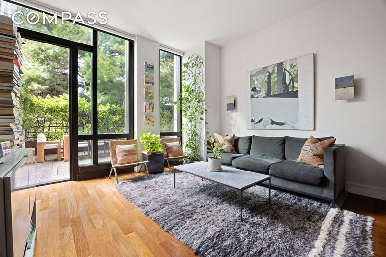 This impeccably designed 1-bedroom, 1.5-bathroom residence epitomizes sophisticated living in the heart of Tribeca. A true urban sanctuary, the home boasts a stunning 525-square-foot private terrace, enveloped by a serene pine tree forest and plantings, offering an unmatched sense of privacy and tranquility.