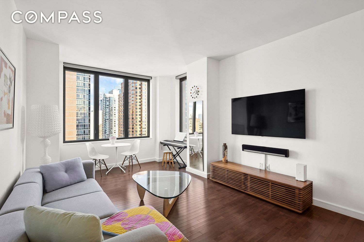 Flooded with natural light, the apartment boasts soaring 9'3" ceilings and oversized windows that frame breathtaking, unobstructed views to the north. Additional windows to the east and west enhance the panoramic experience, offering iconic sights of the Empire State Building, Chrysler Building, and even the Hudson River from the bedroom. Revel in sweeping skyline vistas and open views of Chelsea from every rooma truly rare find!