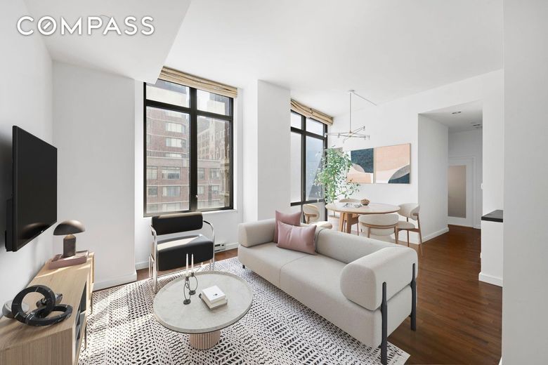 Stunning and rare 2-bedroom, 2-bath corner loft-style residence at the amenity-rich Chelsea Stratus, featuring 1,229 square feet of bright, open living space with south and east exposures, soaring 10-foot ceilings, and floor-to-ceiling windows one of only two units in the building with this unique layout.