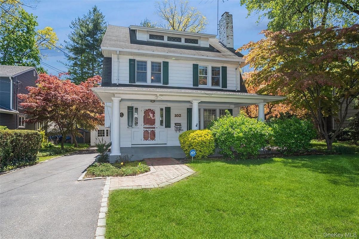 Perfectly located on one of the prettiest streets in Port Washington Estates, this four-to-five-bedroom, two-and-a-half-bathroom Colonial Dutch Revival may be your dream home. Set on a beautifully landscaped, oversized private property, the residence showcases charm and architectural details throughout, including hardwood floors and large windows that create a truly sun-drenched interior with exquisite views from every window. When you enter through the front door into a spacious foyer, you are led into the inviting living room with a fireplace and onto a banquet-sized dining room and den, as well as the eat-in kitchen and separate laundry room with easy access via sliding doors to the deck, patio, and backyard. The addition of a full third-floor space with cathedral ceilings and a large full basement adds tremendous additional room for spacious living.