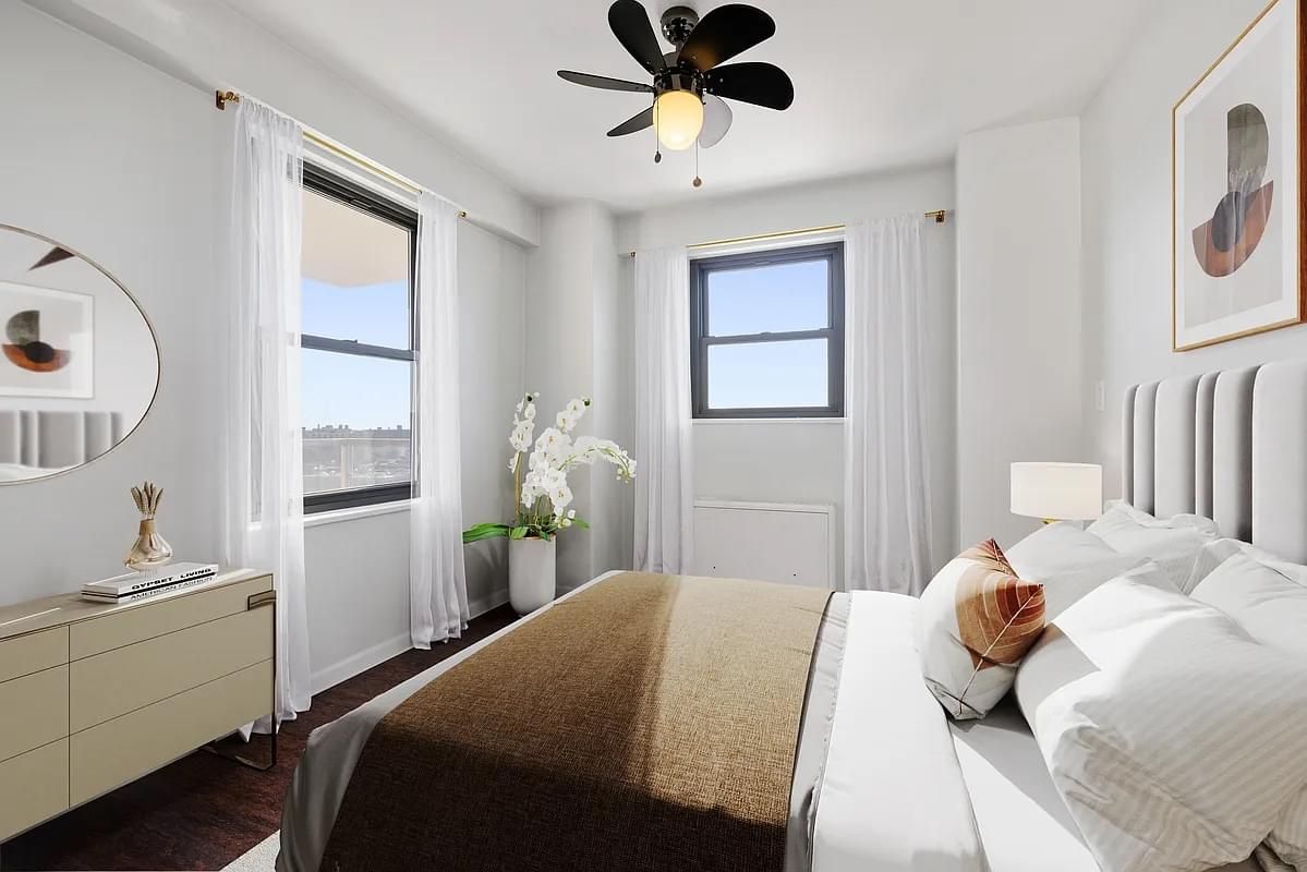 Morning Glory! Wake up to incredible sunrises every day in this incredibly bright, corner home with every luxury you could desire. Completely renovated, you'll enjoy the sparkling bathroom, new kitchen with huge pantry closet, beautiful floors, and freshly painted walls. Just change the colors if you like! A spacious balcony complete this perfect aerie perched on the 17th floor overlooking the city, Long Island Sound, The Whitestone and Throgs Neck bridges, and even Queens and Nassau County! Best of all you will be living in one of the best buildings in The Bronx: the famed Executive Towers-the most luxurious building ever constructed on the Grand Concourse. Designed by the master architect Philip Birnbaum and completed in 1963, 1020 Grand Concourse occupies the prominent corner of 165th Street directly across from the Bronx Museum of Art and conveniently located near the B, D and 4 trains, multiple bus lines, and convenient shopping and services. Four parks nearby offer amazing recreational opportunities and the feeling of living in a meticulously planned neighborhood that brings you the best of the city and the outdoors-and yet is only 20 minutes from Midtown Manhattan! Enjoy full-service living with nothing overlooked. From the integrated central air conditioning and heating system to the 24-hour building staff, you'll be taken care of impeccably! Plus the low, low maintenance includes gas and electricity. Pieds-a-terre, co-purchasing, and pets under 25 pounds are all welcome here! Building Features: 24-hour doorman and security On-site attached garage with available assigned spaces for residents (at additional cost) 24-hour laundry rooms Live-in super On-site management office BuildingLink system for communication and delivery notifications Bicycle storage room Recently-completed exterior restoration project Restored historic tile entrance canopy New automatic entry doors and lighting Projects being planned: Lobby restoration to bring back the style as it was in 1963 Addition of a garden on the garage rooftop Creation of a gym within the building Contact us for an appointment today!
