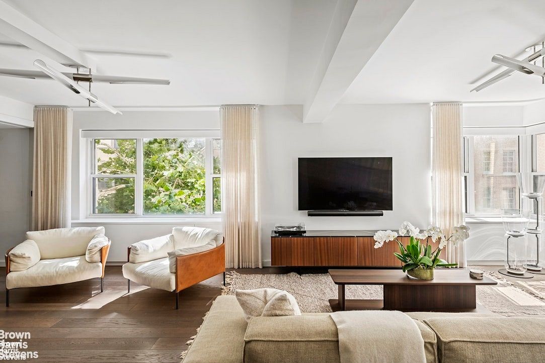 Thoughtfully designed by the renowned architect, West Chin, recognized as one of the "Top 50 Designers You Need to Know in Metro NY Design", no detail has been spared in this meticulously renovated home. As you enter this pristine home, you'll be impressed by the oversized living room and dining area which offers an ideal space for a quiet night at home or an evening of gracious entertaining. Facing south over the building's landscaped courtyard, all rooms are basked in an abundance of natural light making this home a cheerful retreat.