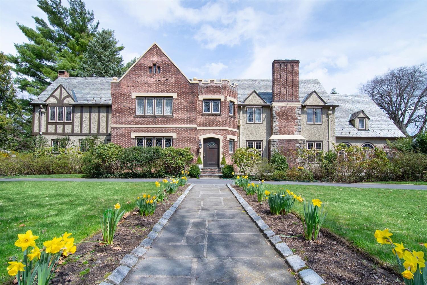 Set on an expansive, nearly one-acre corner lot, 1028 Esplanade is an architectural masterpiece, offering unparalleled privacy, sophistication, and resort-style amenities in one of Pelham’s most sought-after locations. This stunning English Tudor estate blends old-world charm with modern luxury, creating a secluded retreat that is both grandeur in scale and intimate in feel—all just a short commute from New York City. Step outside to your lush private oasis yard, featuring a heated in-ground pool, beautifully landscaped grounds, and multiple entertaining spaces—perfect for relaxing or hosting under the stars.