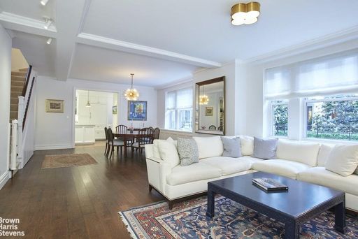 Move right in to this beautifully renovated and impeccably maintained 3br 2.5ba pre-war home in the heart of the Upper East Side. The reconfigured layout is ideal for today's living, with a large living/dining room spanning over 31ft with 8 windows flanking the north and south walls, and a large open eat-in kitchen that can be closed off by pocket doors while entertaining. The kitchen also features north and south exposures, paneled SubZero and Viking appliances, marble countertops, a large island, and a breakfast nook with built-in banquette boasting additional storage. Also on this main level is a Hearth Cabinet fireplace, custom built-ins, a renovated powder room, a Miele W/D hidden behind millwork, and a cleverly-concealed and beautifully-designed bar with a SubZero wine refrigerator. The bedroom wing is located upstairs, where you will find 3 bedrooms and 2 full windowed bathrooms, including an exquisite marble-clad en-suite primary bathroom with double vanity. Sleep soundly in this pin-drop quiet space and enjoy great light and charming views overlooking exquisite townhouse gardens with lush landscaping. This home also features high ceilings, through-the-wall A/C in every room concealed behind attractive millwork, hardwood floors, custom closets, and electronic shades. The apartment transfers with a large walk-in storage unit that is included in the maintenance.