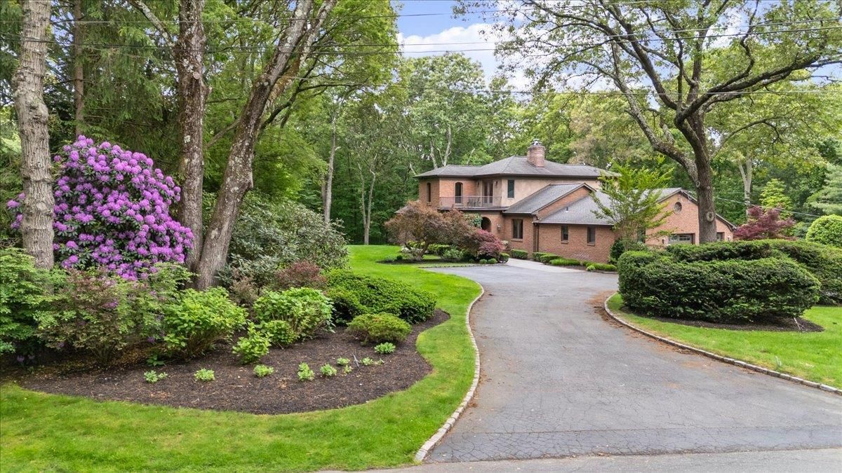 The finished lower level walks out to the rear grounds and unveils a stunning slate terrace with a covered patio featuring dramatic brick archways—perfect for outdoor dining, entertaining, or simply enjoying views of the rolling lawn. With plenty of room for a pool, this backyard oasis invites resort-style living in your own secluded paradise.