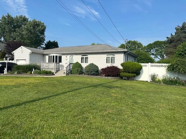 This Ranch Style Home on Lovely Street is Nestled Among Beautiful Gardens and Filled with Natural Light! Adored for decades by one family, this home is Ready to Welcome your own Personal Touches and cherished memories. Enjoy the Ease of One Story Living, the Light filled Living Room with Bow Windows, Dining Area and Charming Kitchen. 3 Bedrooms are off the main hall and a 4th bedroom of living are could provide more privacy. The full sized basement with both interior and exterior access, is great storage with loads of potential for den, guest space, extended family and more with proper permits. Imagine Summer Fun in the Fenced Back Yard, BBQ's on the composite deck with views of Gorgeous Perennial Gardens & Lovingly Maintained Specimen Trees! Ideally Located Near Everything You Need, yet Tucked Away in Your Own Home Sweet Home with Short Drives to the South Shore's Beautiful Bay & Bridges to Ocean Beaches! Your Best Long Island Life Awaits!