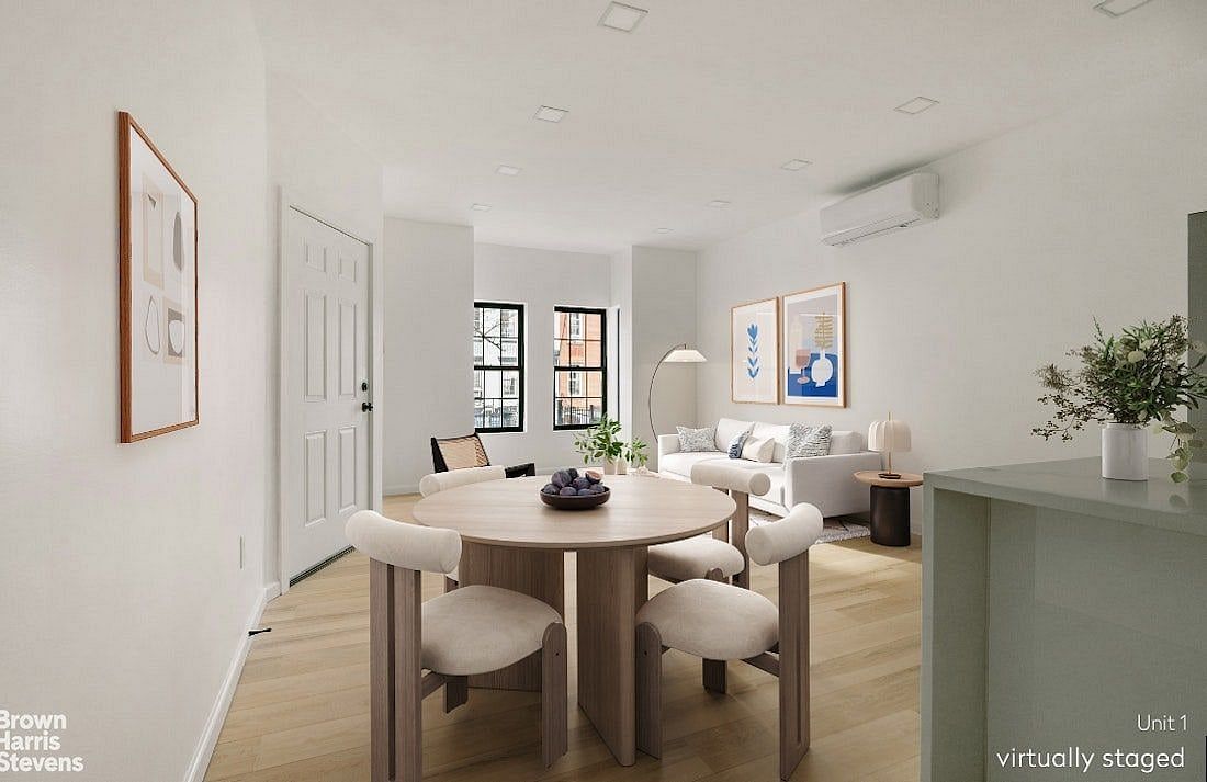 Comprised of an "owners' duplex" and a separate 3-bedroom rental apartment, this property has been fully renovated with new kitchens and bathrooms, split A/C, new windows. With great natural light and 18 feet of width, the exposures and proportions are ideal. The property is well positioned on a quiet residential block, nearby to the J-train at Halsey Street. The opportunity to rent out one of the two units for income is ideal - very low property taxes and separate utilities makes this an ideal investment or live-with-income opportunity.