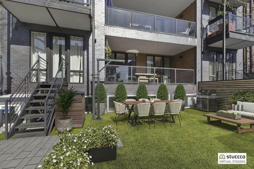 Outdoor Lover's DREAM. Live in an impeccably designed 2 Bedroom 2 Bathroom prime Greenpoint condo that features a MASSIVE private back yard that will become your own personal outdoor oasis. The sun splashed back yard comes equipped with a large modern storage shed and has both electrical outlets and a dual spigot hose connection for all your gardening and entertaining needs. Apartment 2D incredibly also has a SECOND private outdoor space- a covered terrace perfect for dining or lounging just off the living room that has a hard wired fan for those hot summer days and a built in space heater affixed on the wall for those cool Spring and Fall nights.