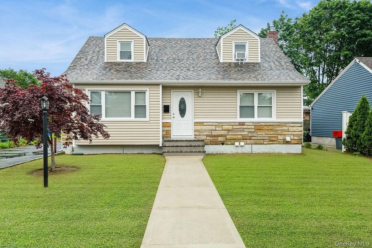 Move right into this beautifully renovated Cape situated on a 60x100 lot in a quiet, residential neighborhood just minutes from schools, major highways, shopping, dining, and more. This spacious home offers 4 bedrooms and 3 full bathrooms, including a legally finished basement with a separate outside entrance, adding 780 sq ft of additional living space—perfect for guests, extended family, or a home office. As you step inside, enjoy a bright and welcoming living room, formal dining room with a new chandelier, and a brand-new kitchen featuring new cabinetry, new appliances, and modern finishes. Brand new hardwood floors run throughout the 1st and 2nd floors, adding warmth and style. Exterior features include a newly paved driveway, in-ground sprinkler system, and a nicely sized backyard—great for entertaining, relaxing, or play. A must see home!