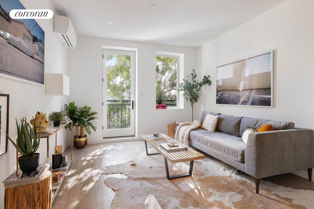 109 Troutman is quite simply located on the coolest block in Bushwick, with handcrafted interiors that perfectly reflect the awesome vibe of this incredible location. This is the Bushwick condo that you have been waiting for. Own instead of renting in the most culturally dynamic neighborhood in all of Brooklyn and enjoy unique and quality finishes with great light, central AC, and your very own private outdoor space in almost every unit. Come home to a handsome aged-brick fa ade with oversized windows on a treelined block with city and skyline views out the back units, and verdant, quiet street views overlooking striking turn-of-the century loft architecture in the front units. Either side you can't go wrong! This collection of eight units will go fast given its location so close to the best transportation and amenities that the neighborhood has to offer. Perfectly located just a few blocks from the M train at Central or the JMZ at Myrtle Avenues, or the L train at Dekalb, with the most exciting amenities you can imagine in every direction including House of Yes, Maria Hernandez Park, Roberta's, Chiangmai Diner, and Eyval, to name just a few of the fantastic offerings that are within just a few blocks. And the interior finishes and layouts will not disappoint! Designed to be appreciated by the creative residents that call Bushwick home, these are not your standard cookie-cutter finishes. Their enduring and high-quality design provide the perfect backdrop no matter what your aesthetic. Custom cabinetry with hand-hewn wood pulls have been warmed up with a matte finish accented by a suite of aged-brass hardware that brings the kitchens to another level. Enjoy durable Quartz countertops, a suite of energy-efficient paneled appliances including a Samsung range and microwave, Frigidaire dishwasher and Haier Fridge. And every unit has been unexpectedly outfitted with a custom laundry area that includes counterspace, extra storage and an LG washer and dryer. This is a cool workspace/spacesaver and unlike anything you have ever seen before in the neighboring buildings. Spacious bathrooms offer a timeless classic design that includes Terrazzo floors with radiant heat, aged brass hardware, and handmade cream porcelain tiles. Enjoy oversized showers and spacious oak vanities with great storage. Additional building features include white-oak flooring, high ceilings, solid core doors, high-quality hardware, oversized European windows, and spacious private outdoor space for almost every unit. These private outdoor spaces include large balconies for the 2nd and 3rd floors, a private garden for the back unit on the 1st floor, and jaw-dropping private roofdecks with panoramic views in both of the top floor 2-bed duplexes. Even the common spaces don't disappoint and your walk-up experience will be enjoyable everyday with thoughtfully designed common spaces in warm tones throughout. These perfect layouts in an awesome location with private outdoor space, low taxes and low common charges, will finally get you to buy in Bushwick, we promise! Pet and investor friendly, and an unrivaled attention to construction quality and design details. Please book your private showing today. You will NOT be disappointed and you can finally give up your rental and start amassing equity in a neighborhood that is only going up!