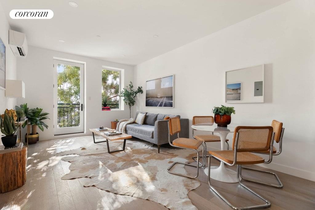 109 Troutman is quite simply located on the coolest block in Bushwick, with handcrafted interiors that perfectly reflect the awesome vibe of this incredible location. This is the Bushwick condo that you have been waiting for. Own instead of renting in the most culturally dynamic neighborhood in all of Brooklyn and enjoy unique and quality finishes with great light, central AC, and your very own private outdoor space in almost every unit. Come home to a handsome aged-brick fa ade with oversized windows on a treelined block with city and skyline views out the back units, and verdant, quiet street views overlooking striking turn-of-the century loft architecture in the front units. Either side you can't go wrong! This collection of eight units will go fast given its location so close to the best transportation and amenities that the neighborhood has to offer. Perfectly located just a few blocks from the M train at Central or the JMZ at Myrtle Avenues, or the L train at Dekalb, with the most exciting amenities you can imagine in every direction including House of Yes, Maria Hernandez Park, Roberta's, Chiangmai Diner, and Eyval, to name just a few of the fantastic offerings that are within just a few blocks. And the interior finishes and layouts will not disappoint! Designed to be appreciated by the creative residents that call Bushwick home, these are not your standard cookie-cutter finishes. Their enduring and high-quality design provide the perfect backdrop no matter what your aesthetic. Custom cabinetry with hand-hewn wood pulls have been warmed up with a matte finish accented by a suite of aged-brass hardware that brings the kitchens to another level. Enjoy durable Quartz countertops, a suite of energy-efficient paneled appliances including a Samsung range and microwave, Frigidaire dishwasher and Haier Fridge. And every unit has been unexpectedly outfitted with a custom laundry area that includes counterspace, extra storage and an LG washer and dryer. This is a cool workspace/spacesaver and unlike anything you have ever seen before in the neighboring buildings. Spacious bathrooms offer a timeless classic design that includes Terrazzo floors with radiant heat, aged brass hardware, and handmade cream porcelain tiles. Enjoy oversized showers and spacious oak vanities with great storage. Additional building features include white-oak flooring, high ceilings, solid core doors, high-quality hardware, oversized European windows, and spacious private outdoor space for almost every unit. These private outdoor spaces include large balconies for the 2nd and 3rd floors, a private garden for the back unit on the 1st floor, and jaw-dropping private roofdecks with panoramic views in both of the top floor 2-bed duplexes. Even the common spaces don't disappoint and your walk-up experience will be enjoyable everyday with thoughtfully designed common spaces in warm tones throughout. These perfect layouts in an awesome location with private outdoor space, low taxes and low common charges, will finally get you to buy in Bushwick, we promise! Pet and investor friendly, and an unrivaled attention to construction quality and design details. Please book your private showing today. You will NOT be disappointed and you can finally give up your rental and start amassing equity in a neighborhood that is only going up!