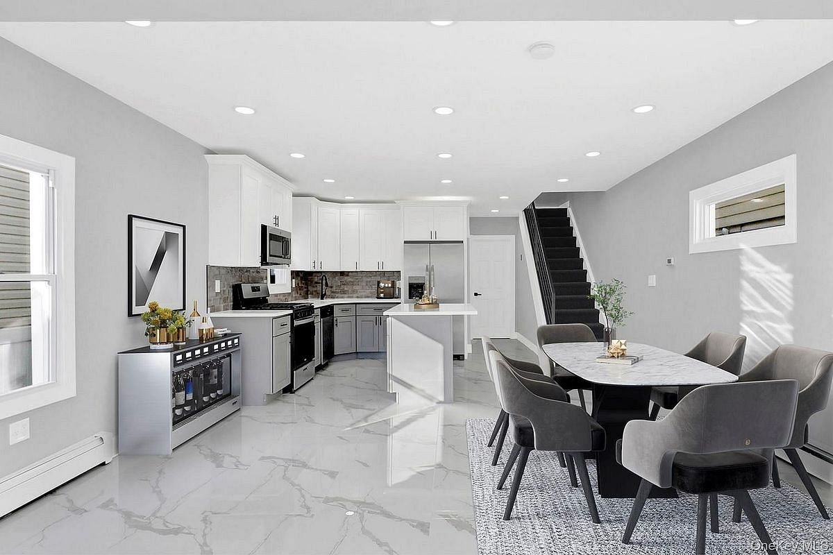 Space, style & modern luxury come together at 109-20 221 Street. This meticulously renovated, move in ready fully detached single family will captivate you from the moment you arrive with its warm & welcoming energy. Sitting on a 30x100 lot, on a beautiful tree lined dead end street of Queens Village. Featuring a wide private driveway, and huge yard space to enjoy outdoor gatherings. This turn key property is the perfect opportunity for buyers looking for space. Open the door and enter an expansive sun drenched formal living area which provides great space for entertaining. The formal dining area is overlooked by the elegant kitchen any chef will love. Kitchen features floor to ceiling custom cabinetry, adorned with a full fleet of stainless, island for bar stool seating and leads out into lush rear yard. full bath on first floor for your guest. Towards the rear of the property a spacious master bathroom awaits you with a private suite. Up a flight of stairs onto the 2nd floor 3 spacious bedrooms awaits you, each equipped with ample closet space. Down the hall a fully tiled bathroom is equipped with state of the art wall & floor tiles. Renovations include brand new flooring, recessed lighting, all new electrical, heating and plumbing systems throughout. All work was done with permits. House is equipped with Solar Panels. The full finished basement has both interior and exterior access and can be used as the perfect in - law suite. Conveniently located with close proximity to major transportation which makes commuting a breeze. Just off , Cross Island Parkway,Belmont Shopping Outlet center, Short blocks to schools, shopping centers, restaurants, cafes, parks, and many other vibrant neighborhood amenities.