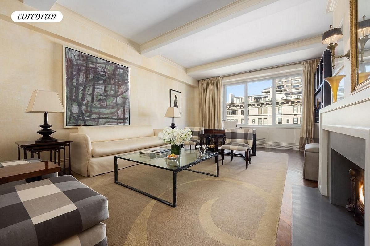 A semi-private elevator landing opens to a gracious 21-foot-long entrance gallery, introducing the home's exceptional scale. The expansive, 30-foot-long living room is centered around a wood-burning fireplace and framed by three oversized picture windows with sweeping western views over Park Avenue. Adjacent, the formal dining room is ideally suited for elegant entertaining and features three large picture windows facing east with picturesque open city views. Also off the gallery is a handsome wood-paneled library facing Park Avenue with custom bookshelves, as well as an elegant powder room.