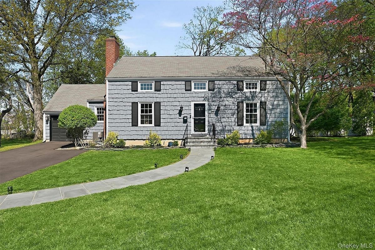 Charming and picture-perfect, this Cape leaves nothing to be desired! Perfectly set on .27 flat, fully fenced acres, this home is sheer perfection. The first floor offers a bright, open layout featuring a spacious living room with fireplace and large front window, an oversized dining room, and a modern white chef's kitchen with stainless steel appliances and quartz countertops—beautifully designed by House Hunter Renovations. Also on the first floor are a large bedroom, a full hall bath, and a fourth bedroom or ideal home office. Upstairs boasts an oversized primary bedroom with a generous walk-in closet and abundant storage, a spacious hall bath, and an additional large bedroom. The lower level is a blank canvas, ready to be finished as a gym, playroom, or recreation space. Enjoy al fresco entertaining on the deck or create your own outdoor oasis on the perfectly flat yard. Whether downsizing or just starting out, this home truly has it all!