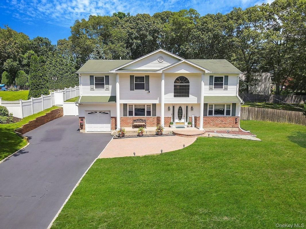 Majestic, Expanded Center Hall Colonial, 4 BR, 2.5 Baths on Usable 1/2 Acre Plus Property in North Smithtown; All Updated Windows Including Floor to Ceiling Andersens with Panoramic Views, Updated Siding (5 yrs), Roofing, Heating, Cesspool (10 Yrs); Newer Central AC (4 Yrs), Newer In Ground 16x32 Pool, Updated Appliances; Huge Primary Suite with 2 Walk-In Closets, Jacuzzi Tub and Separate Shower. Tax with Basic Star $18,567.36.