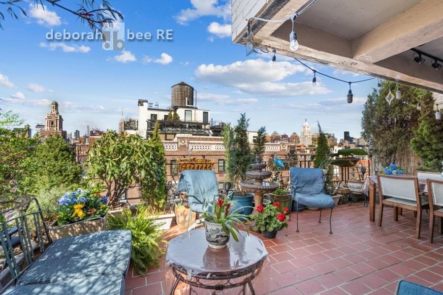 Welcome to this uniquely special home, located on coveted lower 5th Avenue. A rare find, that has been reimagined in an open plan concept, providing an expansive Living Room,Dining and Kitchen that spills out onto a lovely land-scaped terrace. North, west and south exposures let the light in all day, and the evenings enjoy fiery sunsets. Designed for sumptuous entertaining so you and your guests can delight in the village-scape roof top views, and the glittering nights with the colorful lights of the iconic Empire State building, The Freedom Tower and The Con Ed building.