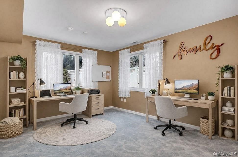 The second floor offers a private primary bedroom suite, an additional bedroom currently used as a home office, and a full bathroom.