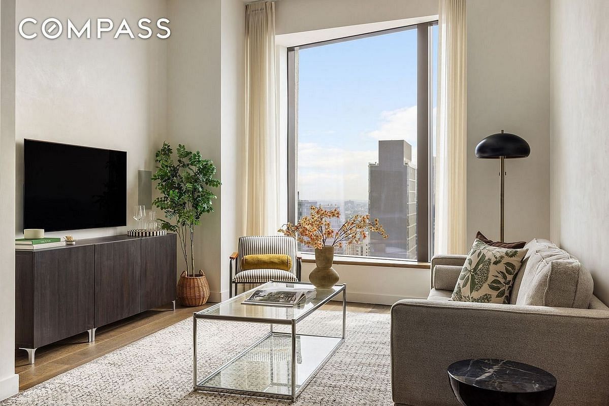 Residence 43E is perched high in the sky with 10 foot ceilings and dual south-east exposures in one of Brooklyns premier luxury condominiums with room for living, dining and entertaining.