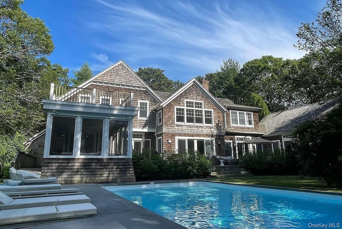 Set on 1.52+\- acres down a charming, quiet cul-de-sac at the fringe of East Hampton Village, this exceptional residence offers a rare combination of scale, privacy, and refined Hamptons living. Spanning approximately 4,650+\- square feet-with an additional 2,300+\- square feet of beautifully finished lower level-the home features 8 bedrooms and 6 bathrooms, thoughtfully designed for both relaxed living and effortless entertaining. A grand entrance welcomes you into an expansive open-concept living and dining area, highlighted by soaring ceilings, a fireplace, and walls of glass doors that frame picturesque views of the lush grounds. The eat-in kitchen flows seamlessly into a tranquil screened-in porch, creating the perfect setting for indoor-outdoor dining. The first-floor primary suite is a private retreat, complete with a spacious sitting room or library featuring a wood-burning fireplace, dramatic double-height ceilings, and direct access to the backyard. The upper level features a total of five well-appointed rooms, including an en suite junior master with a walk-in closet, and an additional ensuite guest bedroom. The finished lower level offers exceptional versatility, including a large recreation room that doubles as the eighth bedroom, complete with a full bath and double sliding doors leading to a secluded bluestone patio. The back grounds of the property have been extensively enhanced with all-new landscaping, a newly installed bluestone patio, and an inviting 18x40 swimming pool with a new liner. A firepit and multiple gathering areas provide ideal spaces for relaxation and entertaining, complemented by the convenience of a two-car garage. Adding to the sense of tranquility, a large reserve sits directly across the street, ensuring lasting privacy. Residents also enjoy access to two community tennis courts, now thoughtfully updated with pickleball markings. This is a rare opportunity to own a spacious and beautifully updated home in one of East Hampton's most desirable and peaceful settings, all with proximity to the Village.