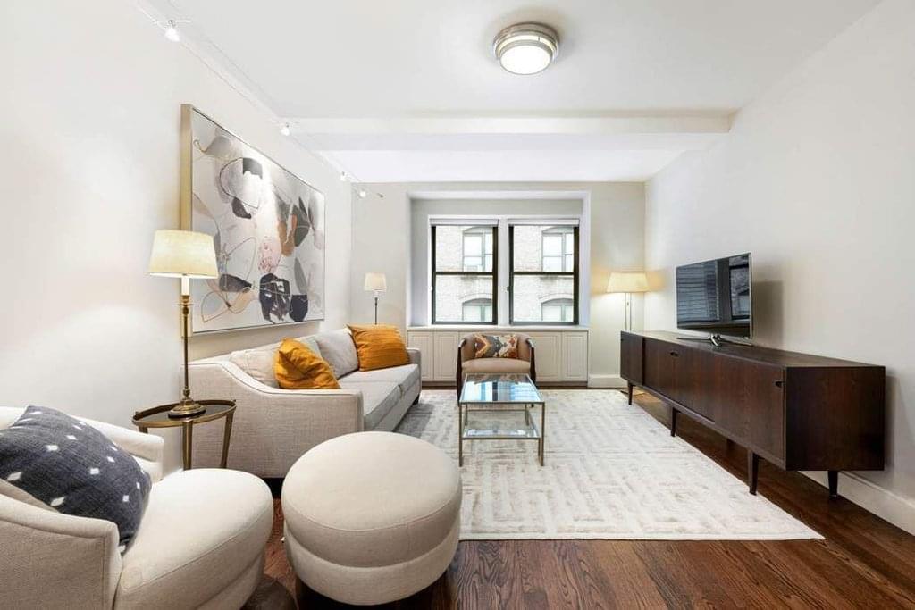 A welcoming foyer leads you into a large South facing living room. Adjacent is the renovated gallery kitchen with top-of-the-line appliances including a Miele range and Sub Zero refrigerator. Next to the living room you will find the primary corner bedroom that can easily fit a king size bed. The primary bedroom features a walk-in closet, South and West exposures. In addition, there is a windowed alcove perfect for added closet space or a home office. The primary marbled bathroom features a soaking tub and shower. There is an added powder room situated off the living area.