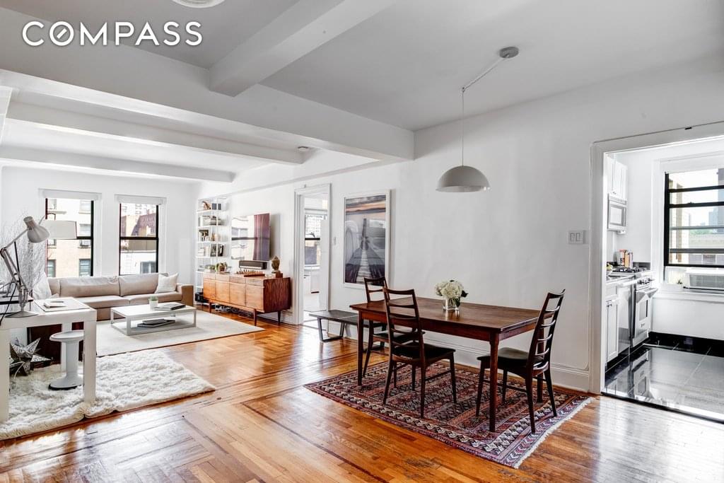 8B is a quintessential art deco pre-war condo on West 86th Street, just one block from Central Park West. Perched up above, it has open views, faces north on a double wide street, and also faces east and south. This home is dripping with pre-war details such as inlay hardwood floors throughout the whole space, beamed ceilings, an original cast iron tub plus, windows in every room.