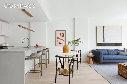 Sophisticated finishes throughout, including Bosch appliances, quartz counters, and gorgeous white oak floors. A large in unit W/D. Efficient central heating and cooling.