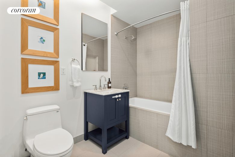 Upon entrance, the 1,141 square-foot interior greets you with a beautiful southern-facing wall of windows. An open chef's kitchen, outfitted with soft-touch Pendi kitchen cabinetry, boasts a reliable Bosch appliance package. Storage and countertop space is abundant, with every nook and cranny efficiently utilized. The generous living and dining areas are excellent entertainment zones and work-from-home spaces, or perfect for simply relaxing. Primary and secondary bedrooms flank either side of the apartment for optimal peace and privacy. While both are king-sized and get the same incredible natural light, the primary also sports a fabulous walk-in-closet and full en-suite bath. Each bathroom is outfitted with beautiful Axor Citterio and Hansgrohe fixtures, 24 volcanic tiling, and triple-mirrored bathroom cabinets. If all that wasn't enough, the central heating & cooling and stackable in-unit W/D will seal the deal. Last, but certainly not least, an underground parking space - directly accessible by the building's elevator - is available for rent for a very reasonable sum.