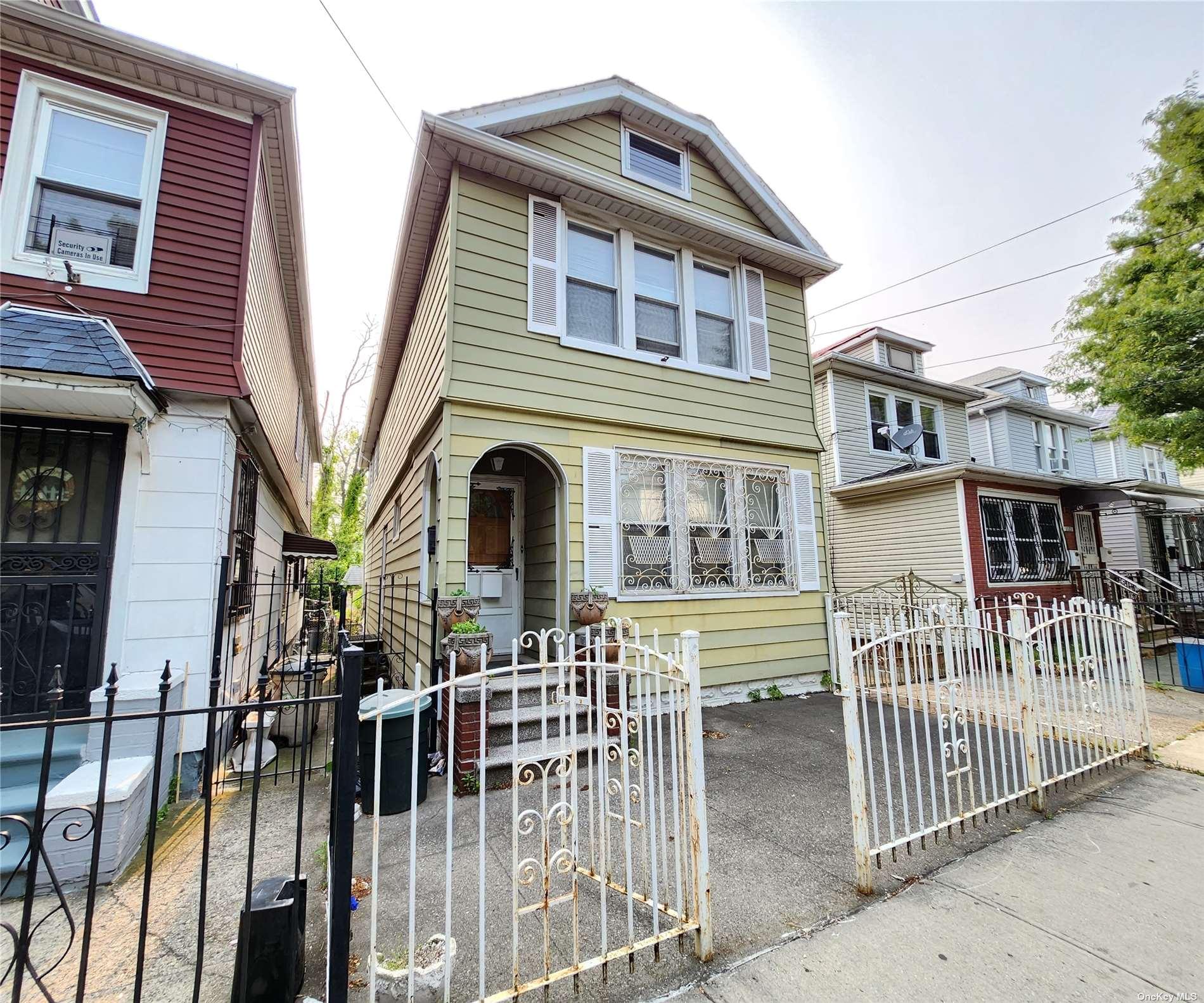 GREAT 2 FAMILY HOUSE 2 GAS METERS, WALKING DISTANCE TO 6 TRAIN AND SHOPS, MAKE THIS HOUSE YOUR OWN WHEN YOU UPDATE THE KITCHEN AND BATHROOMS.... LARGE BASEMENT WITH SEPARATE ENTRANCE. 2 CAR GARAGE.