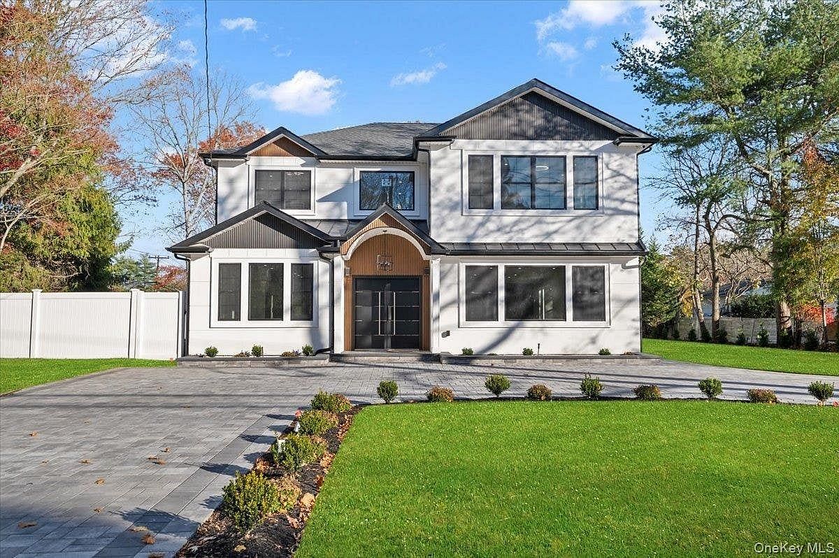 Welcome to 1130 Carlls Straight Path, a 5,625 sq ft brand-new construction home and experience unmatched modern luxury. Designed with exceptional efficiency in mind, the residence is built with 2x6 spray-foam insulated walls, energy-efficient heat pumps, and a 300-amp electrical service equipped with a Tesla charger and ready for future solar integration. The gourmet kitchen serves as the centerpiece of the home, showcasing a waterfall stone island with a matching full-height backsplash—an entertainer's dream.